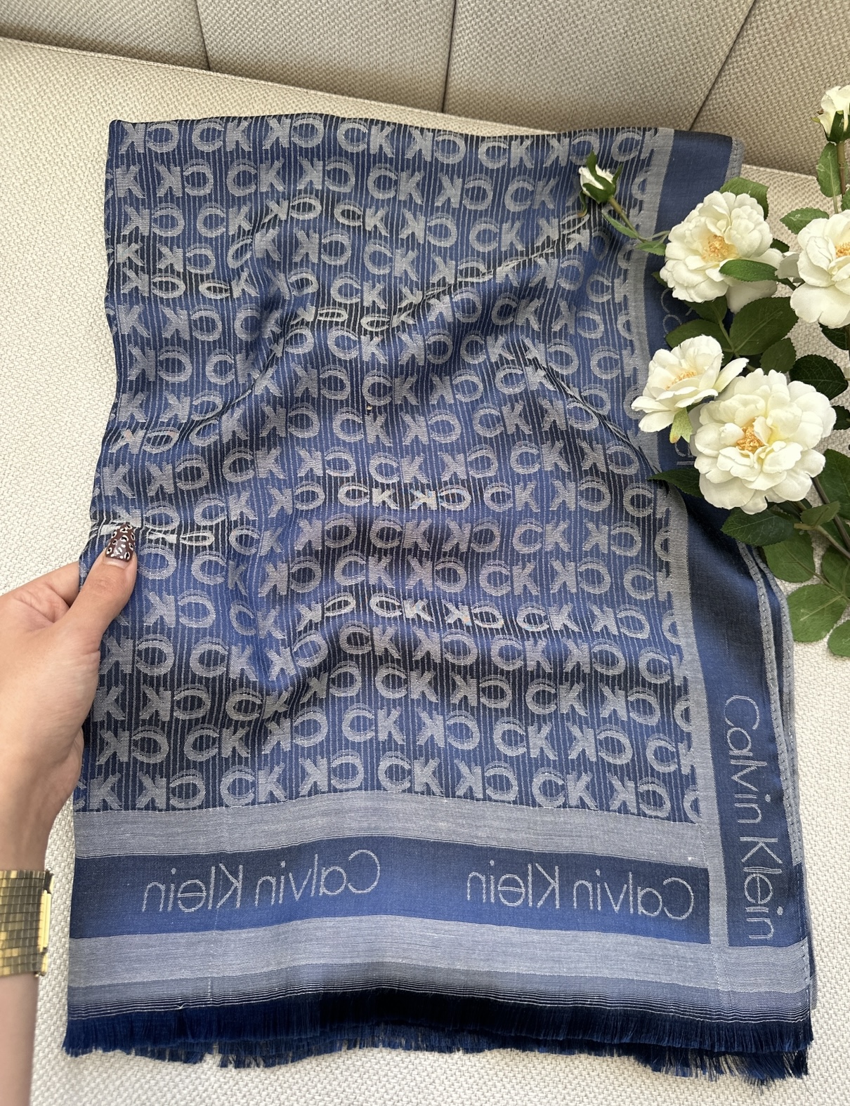 شال آبی طوسی طرح ck
