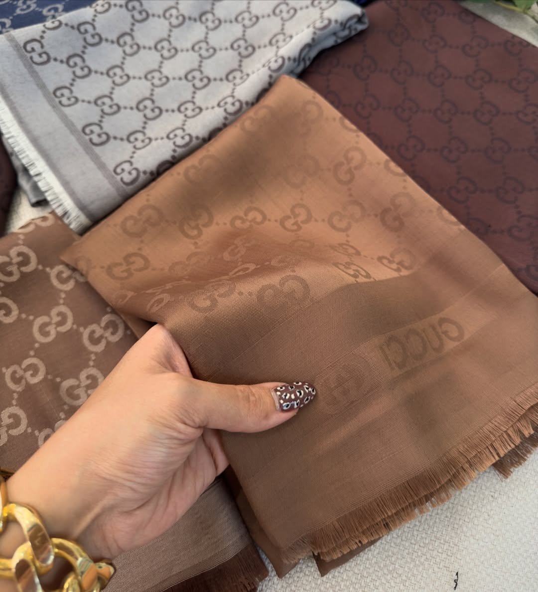 شال نسکافه ای با ۳ طرح lv و گو/چی و کو/چ. سر و لیز نیست.
