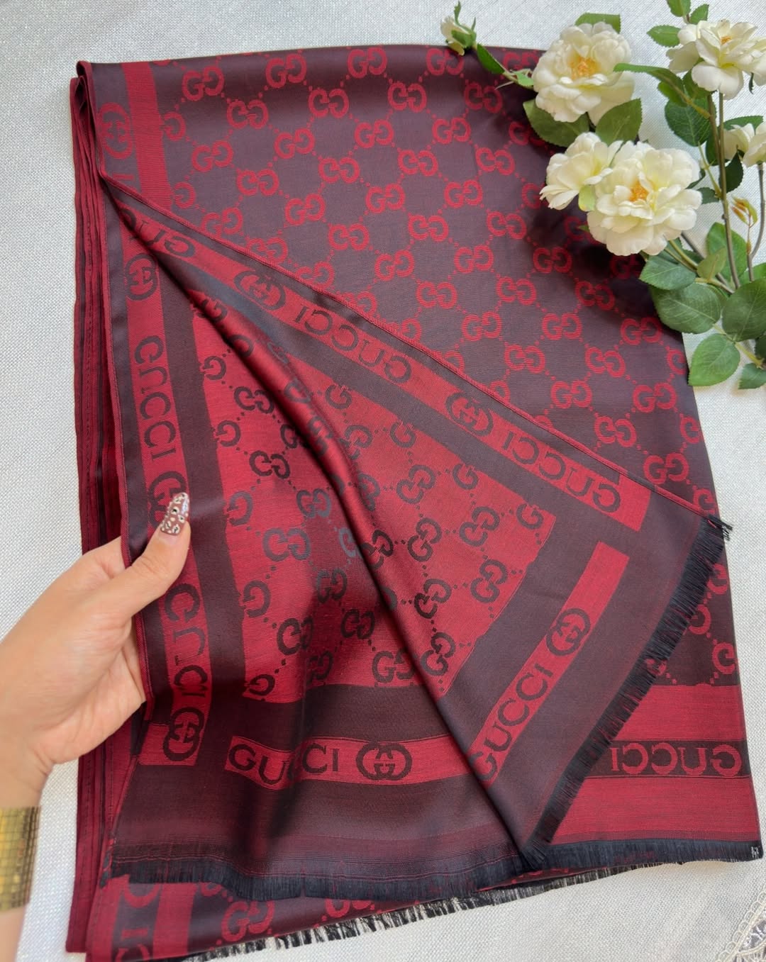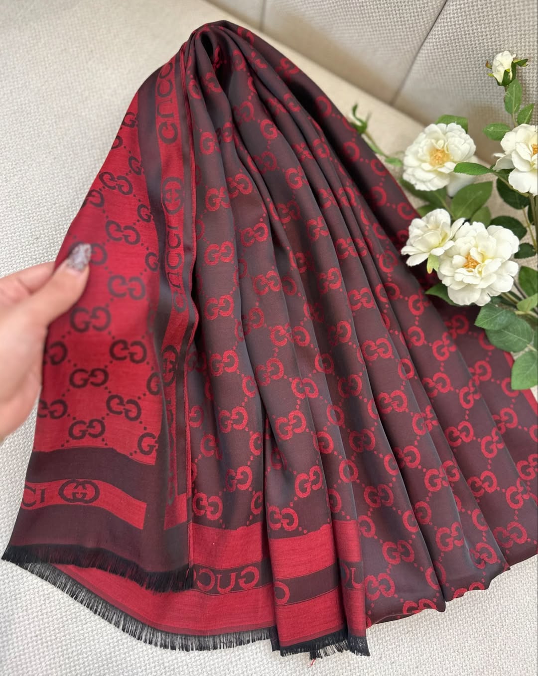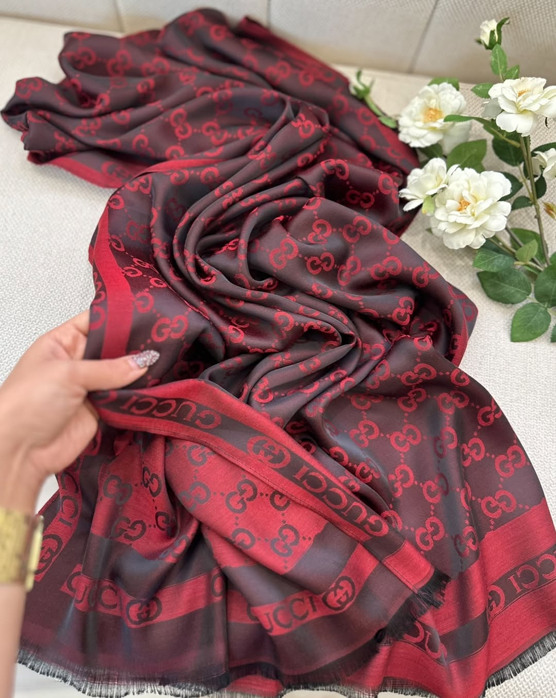 شال دو رو (یک رو زمینه ذغالی و یک رو زمینه زرشکی) هر دو رو قابل استفاده قواره استاندارد جنس ۴ فصل