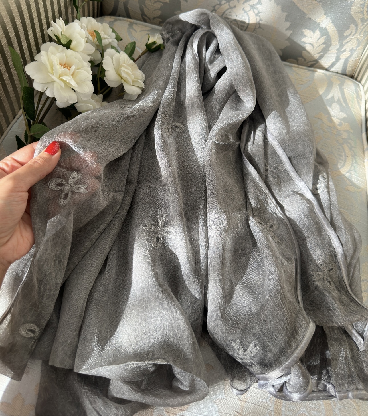 شال حریر سنگشور وارداتی مدل پاپیونی بر عکس ظاهرش سر و لیز نیست بسیار سبک و راحت قواره استاندارد ۷۵ در ۲ ( دولا سر میشه)