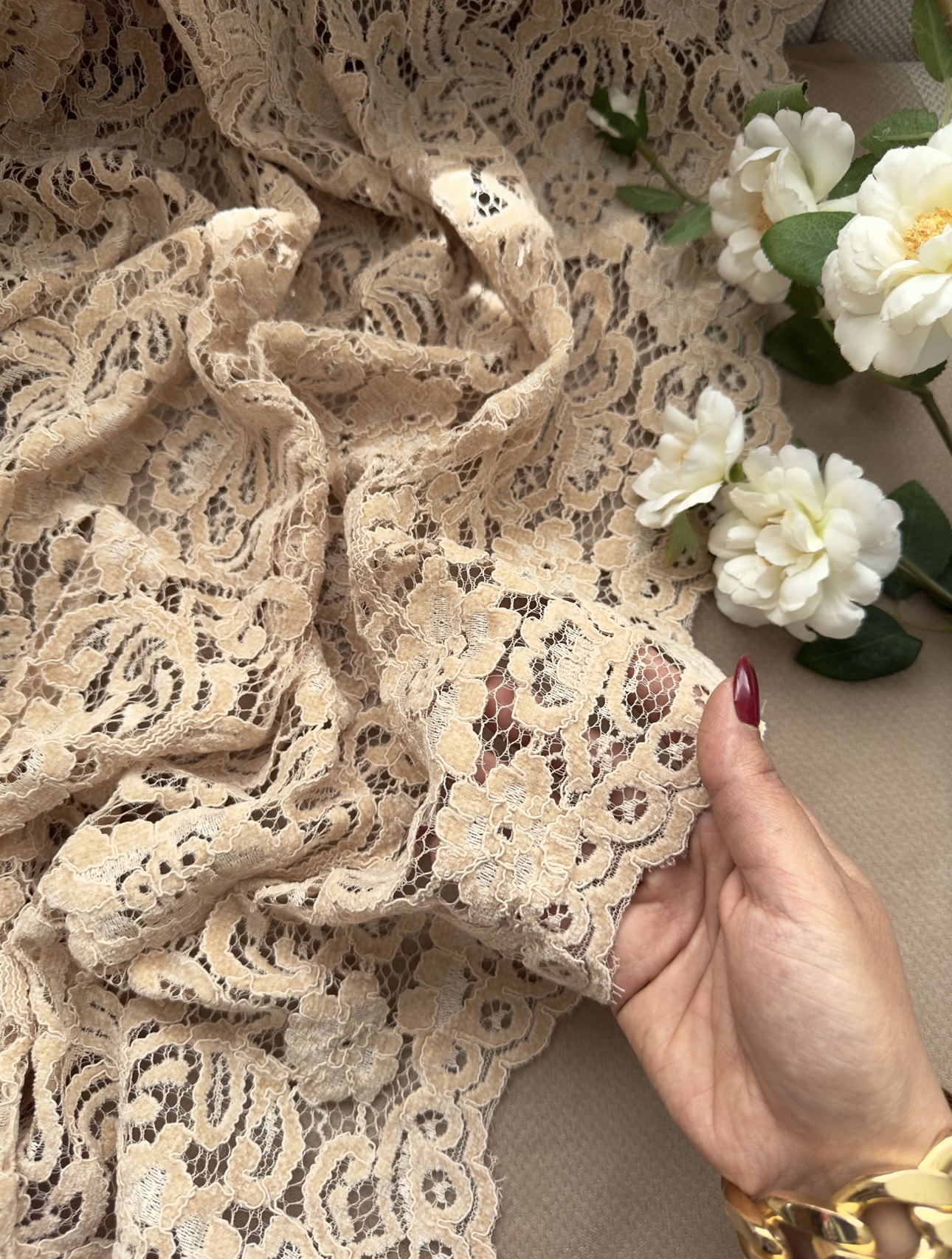 روسری لبه تور دوزی جنس دانتل مخمل وارداتی قواره حدودی ۱۴۵( لبه ای که روی سر قرار میگیرد ) در ۷۵ قیمت ویژه و رقابتی مجلسی و شیک و خاص
